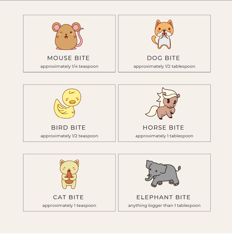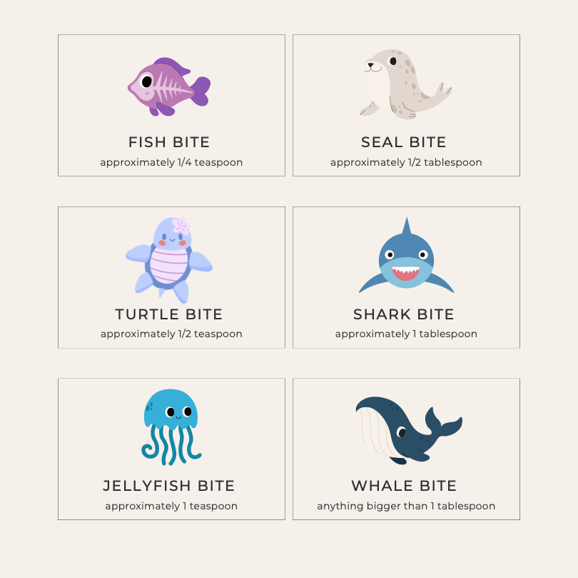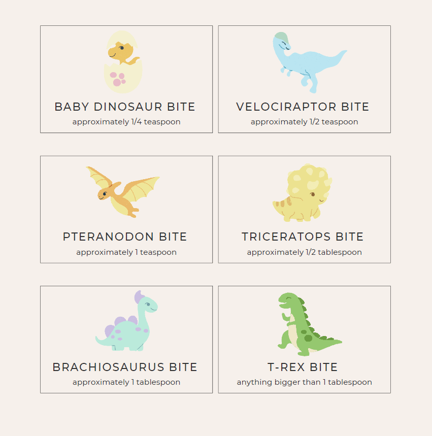 Inspired by Marsha Dunn Kein's bite-size concept, be sure to download the Bite-Size cards for any food play activity. This fun game is a great way to motivate and encourage your picky eater to try new or unfamiliar foods. If they are not ready to fully swallow the food, you can leave a small plate or bowl beside them so they can spit out the food after taking a bite.